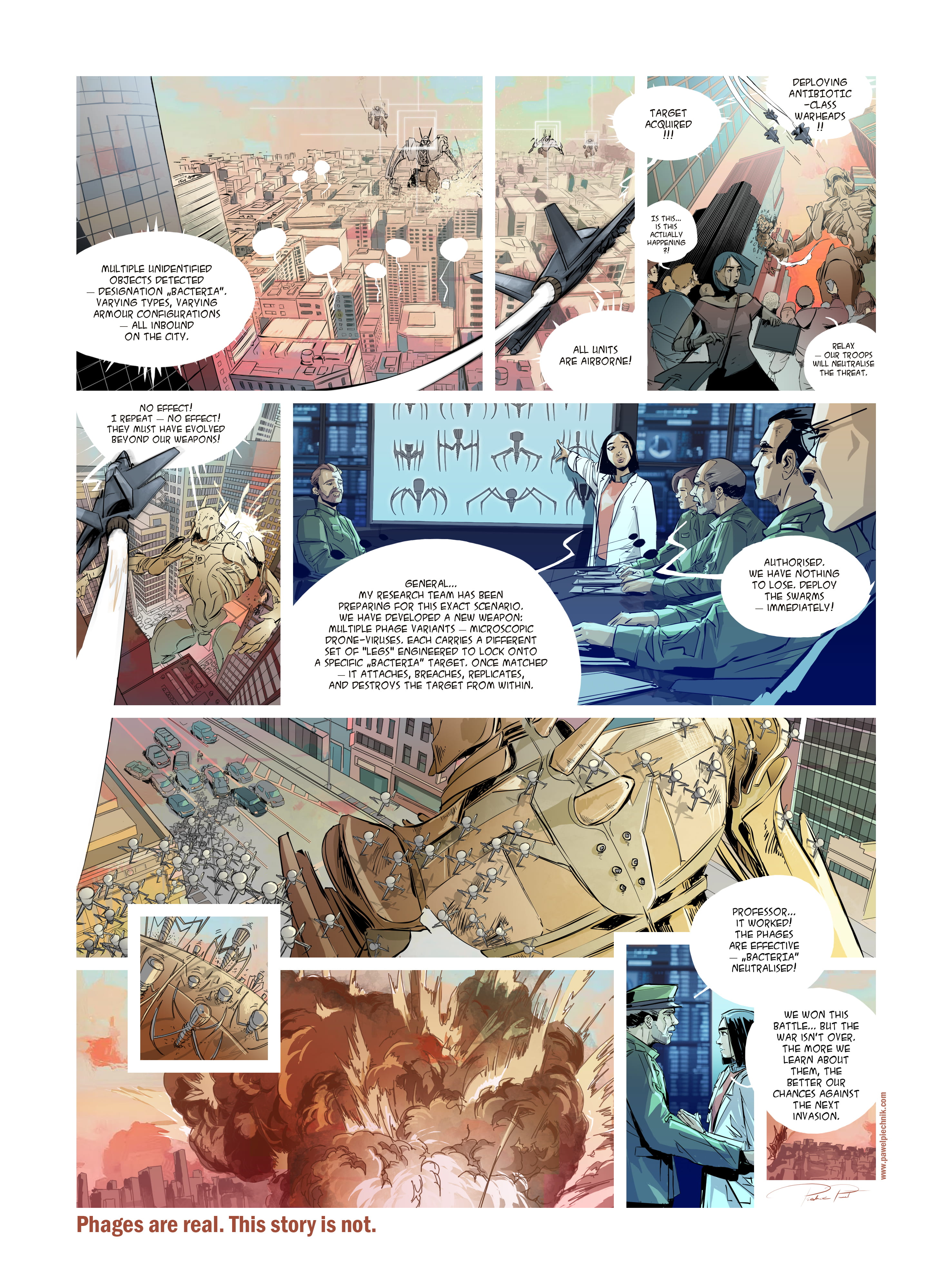 We collaborated with a comic book artist, Paweł Piechnik, to create an illustrated story about bacteriophages and why they are important for the society. The comic is aimed at everyone and no biology background is required. We hope you like it! Available in Polish and English.